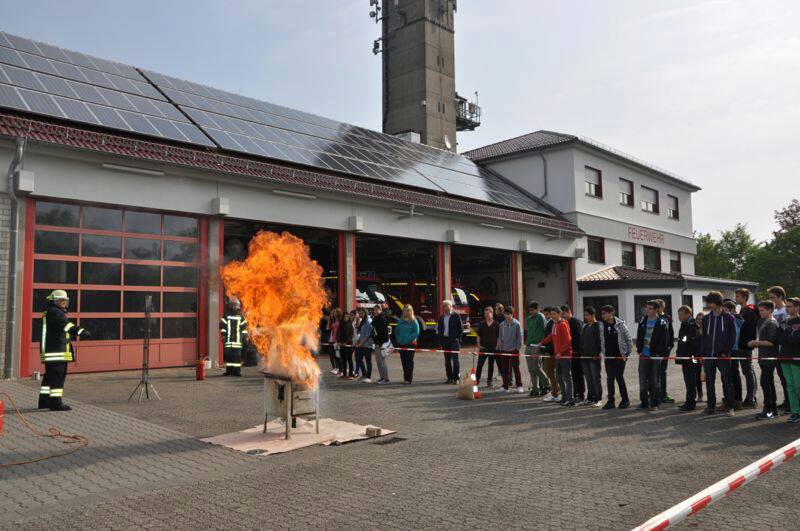 Am vergangenen Mittwochmorgen besuchte die gesamte Jahrgangsstufe 8 der Adolf-Reichwein-Schule Pohlheim das Feuerwehrhaus in Pohlheim Watzenborn-Steinberg. Eine junge Referendarin hatte bei der Stadtjugendfeuerwehr Pohlheim angefragt, ob diese für die Jugendlichen im Rahmen einer Projektwoche eine Fettexplosion inszenieren könne.