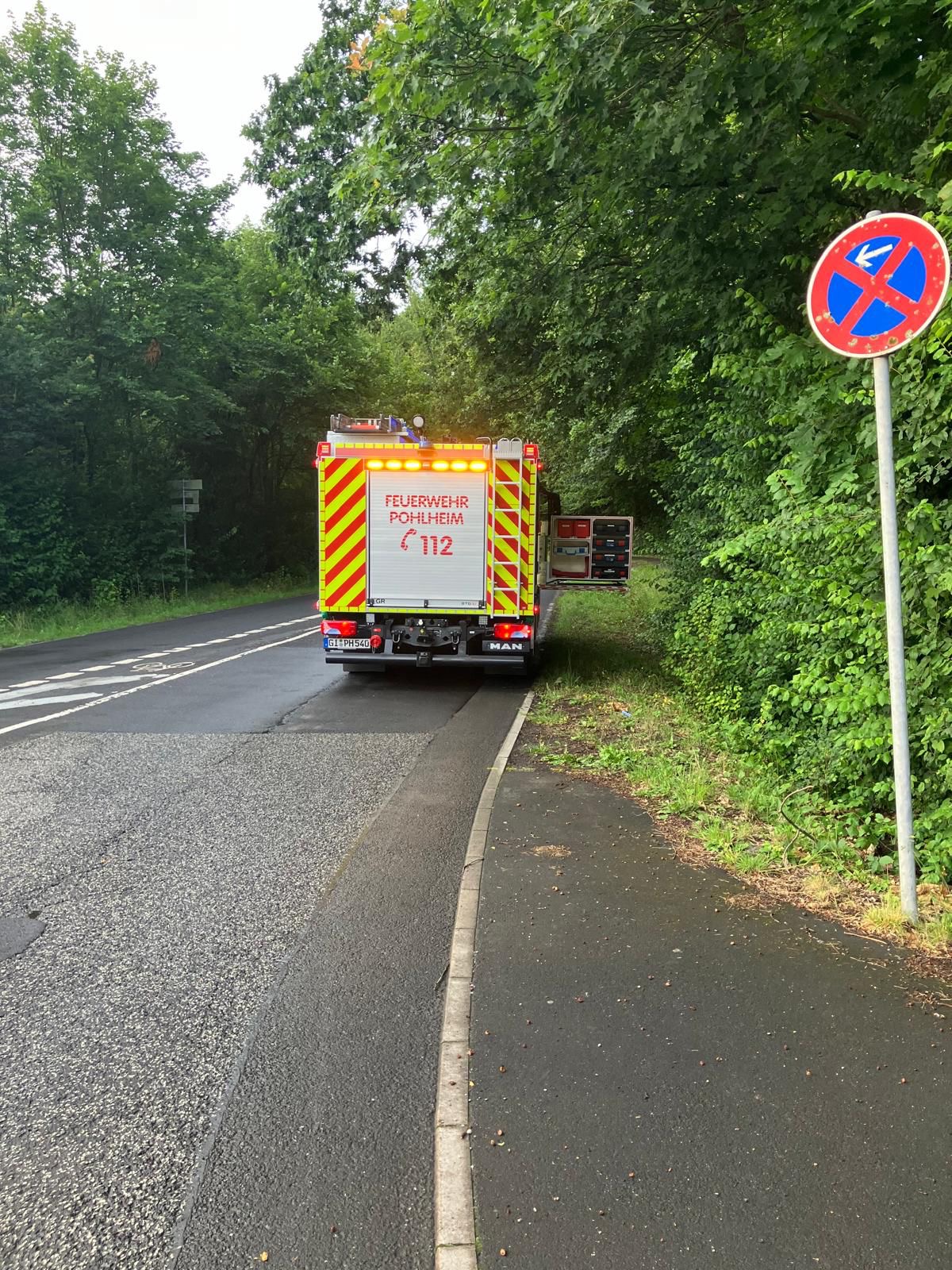 Am Samstagabend wurde die Feuerwehr Pohlheim zu einem Bau auf Straße auf die L3131 Hausen Richtung Gießen alarmiert.