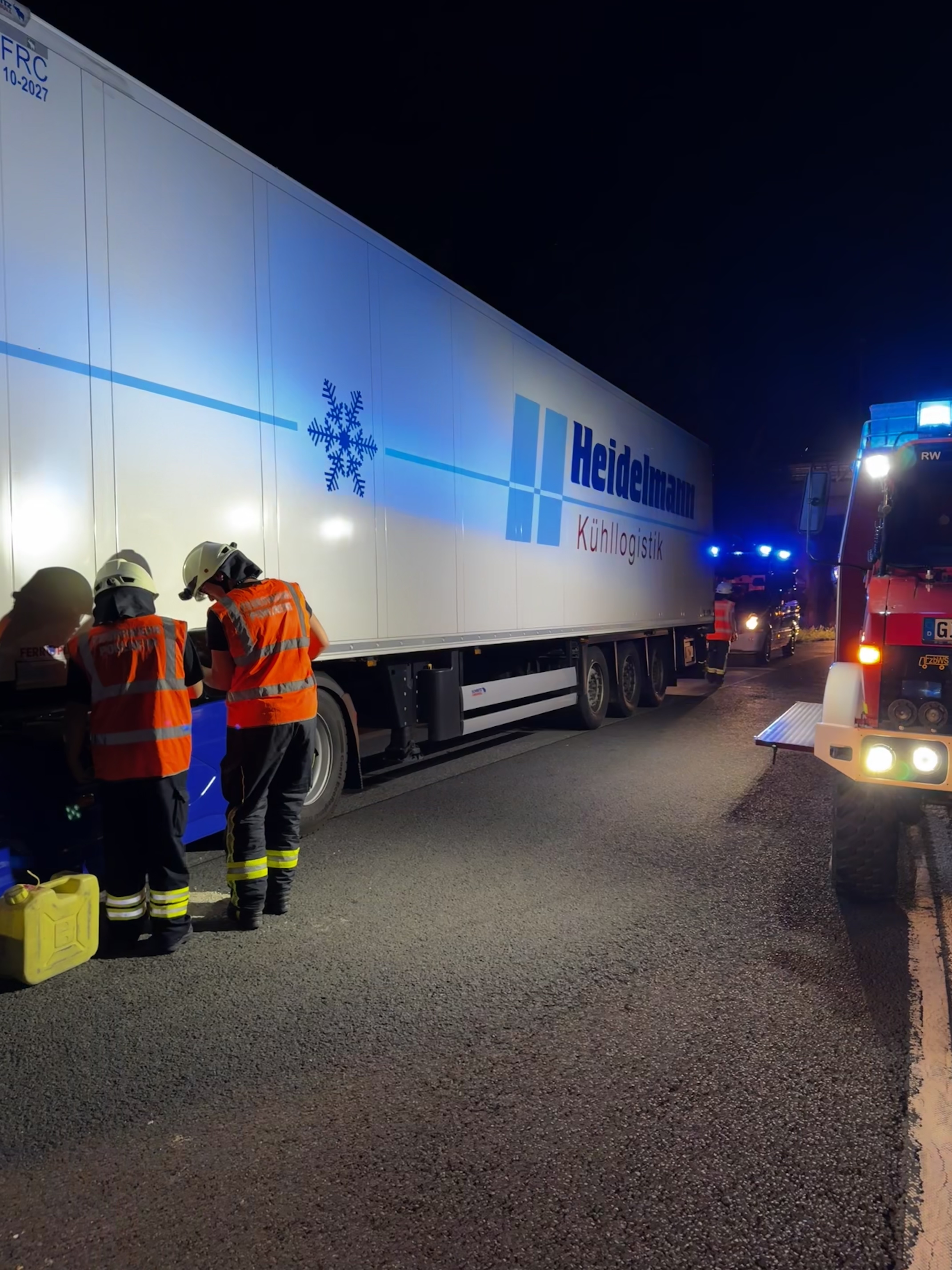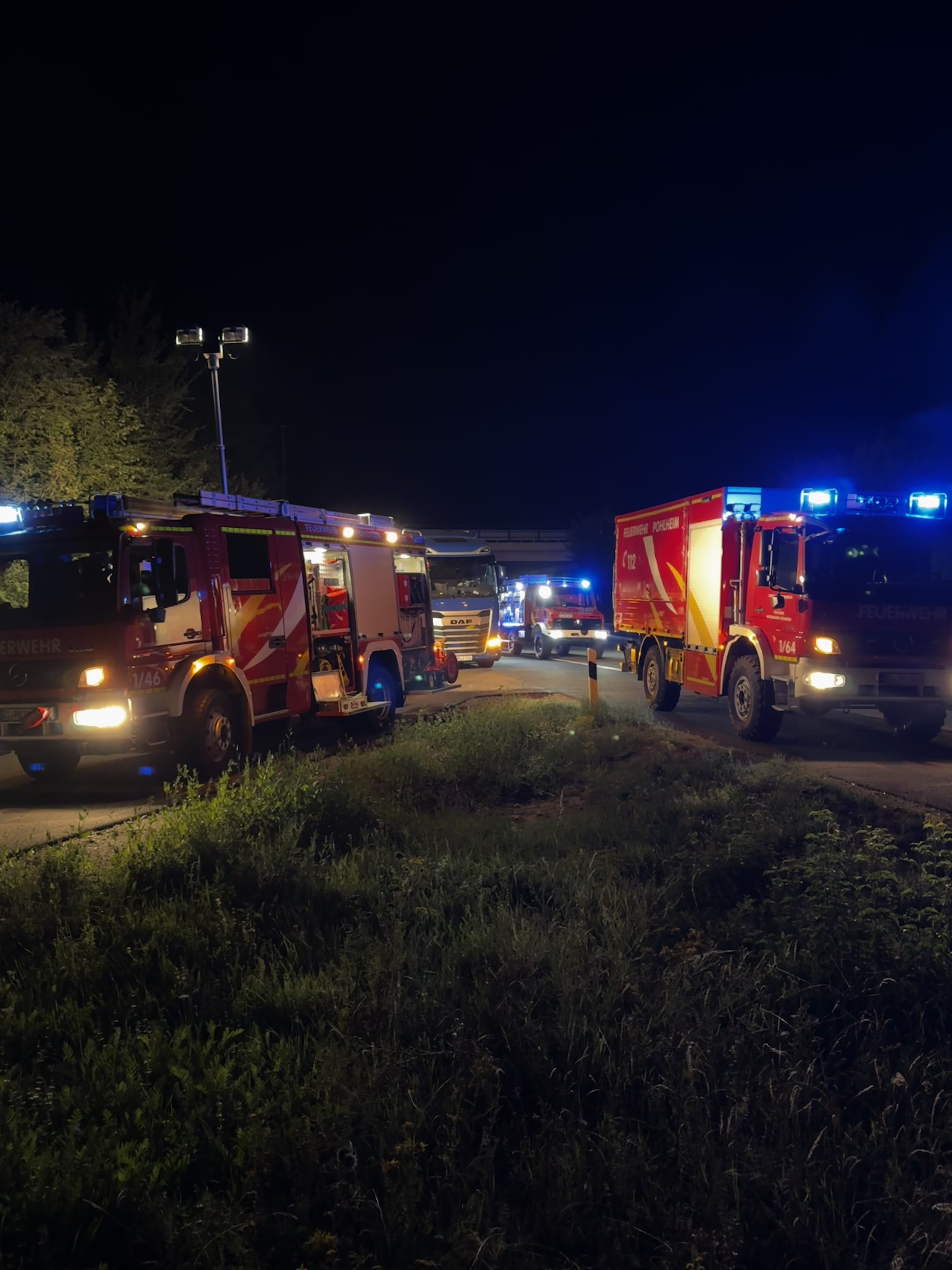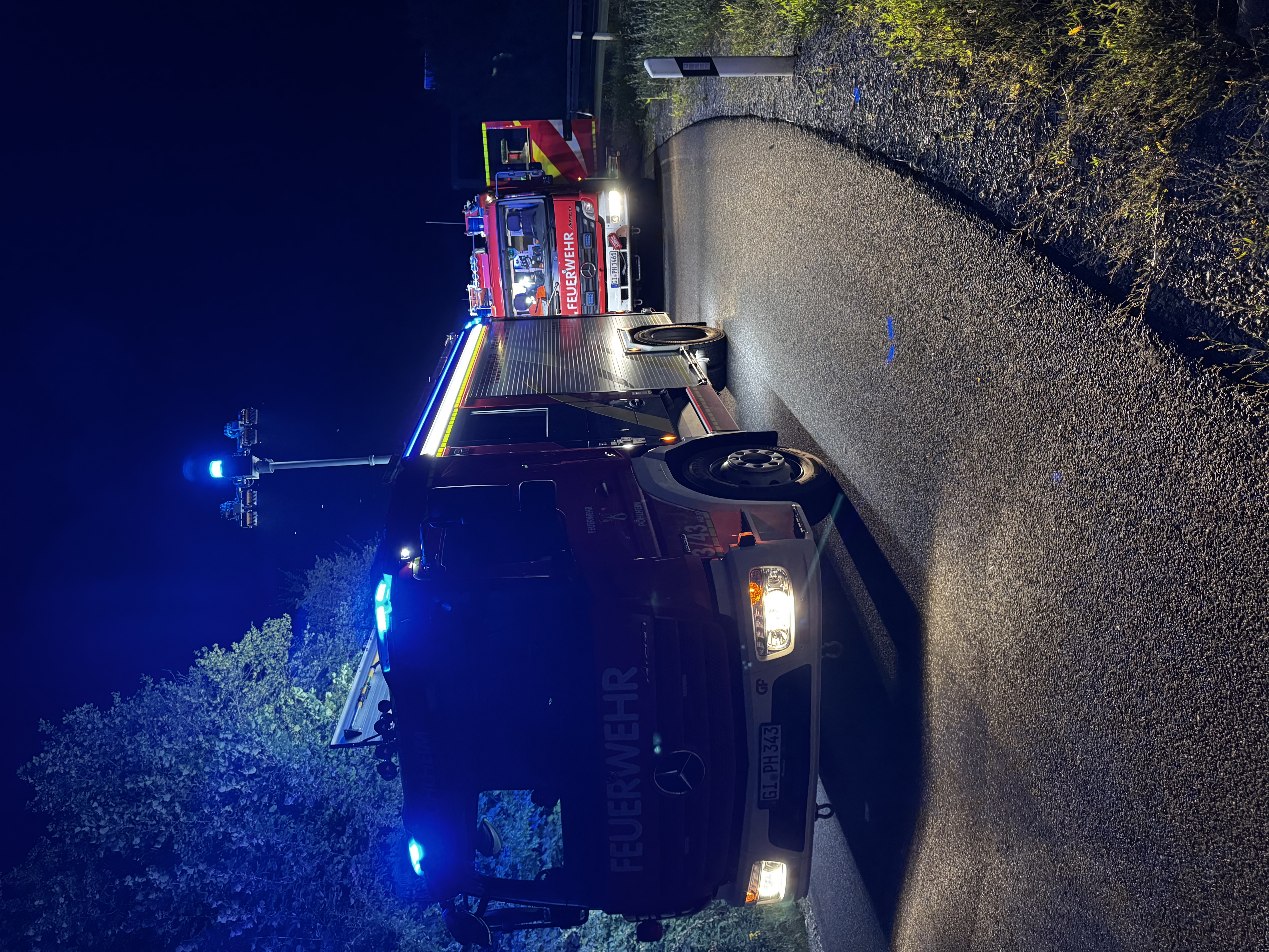 Im Einsatz war auch hier der Autobahnrüstzug der Feuerwehr Pohlheim, ergänzt durch den Gerätewagen Logistik. Der Einsatz dauerte etwa drei Stunden.