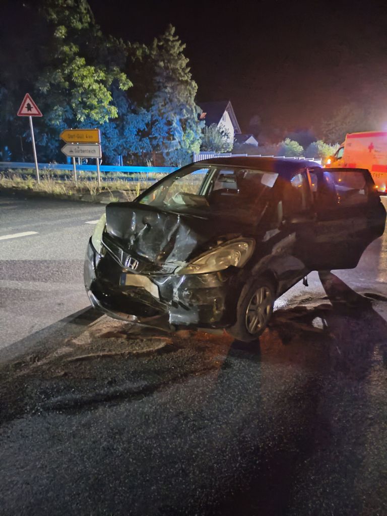 Am Abzweig nach Dorf-Güll kam es zu einem Verkehrsunfall an einer Kreuzung, bei dem zwei PKW beteiligt waren. Drei Personen erlitten Verletzungen und wurden bis zum Eintreffen des Rettungsdienstes von der Feuerwehr erstversorgt. Die Einsatzkräfte leuchteten die Unfallstelle aus, sicherten den Bereich ab und klemmten die Batterien beider Fahrzeuge ab. Zudem wurden auslaufende Betriebsmittel abgestreut und der Brandschutz vorsorglich sichergestellt.