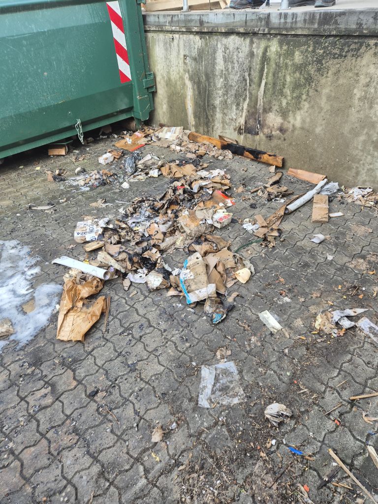 Bei einer dort ansässigen Firma brannte eine Presse für Papierabfälle. Mitarbeiter der Firma hatten bereits erste, erfolgreiche Löschmaßnahmen mit Feuerlöschern eingeleitet. Die Feuerwehr zog die Presse mittels einer maschinellen Zugeinrichtung („Seilwinde“) vom Gebäude und führte Nachlöscharbeiten durch.